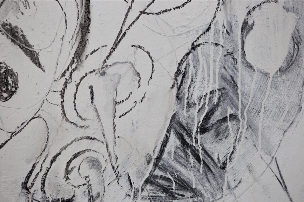 Pokorný isn’t interested in sharp shapes or tribal patterns. He pierces, stitches, scratches, burns, leaves things to freeze in the yard or soak in the rain, pours glue, chisels with a jackhammer, and who knows what else. This is how indoctrination is punished. Can a painting be so smeared, so defiled, that it becomes uncultured?”